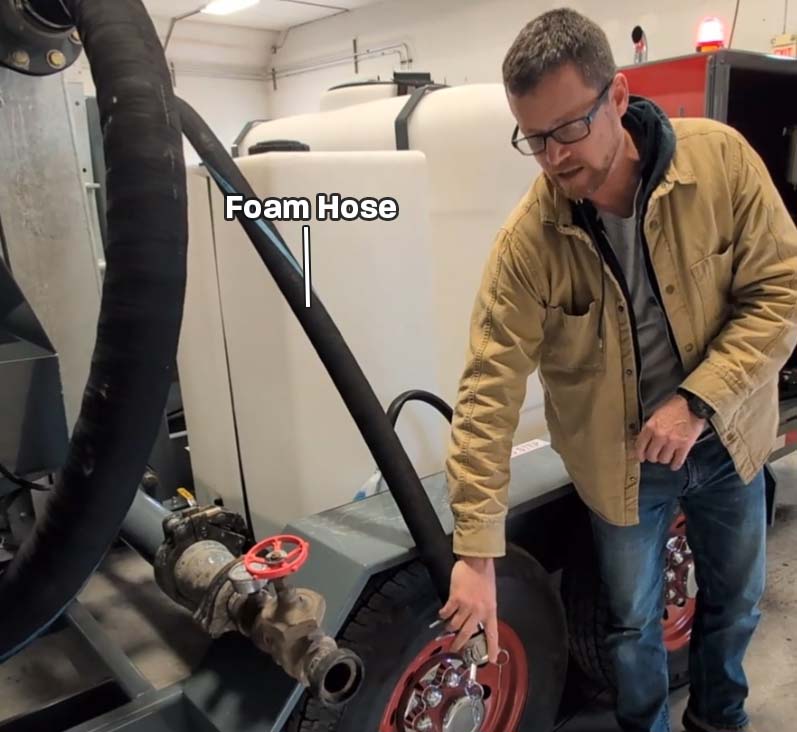5. Check the output. Go to the foam hose and watch for fluid coming out.
