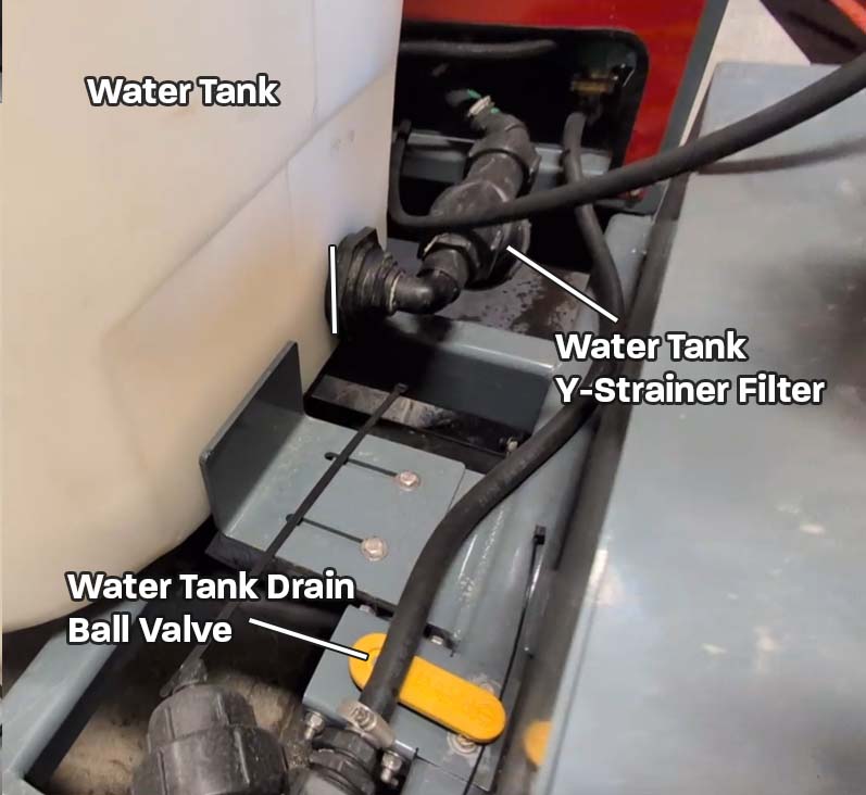 2. Inspect the Filter: Locate the water tank Y strainer filter.
